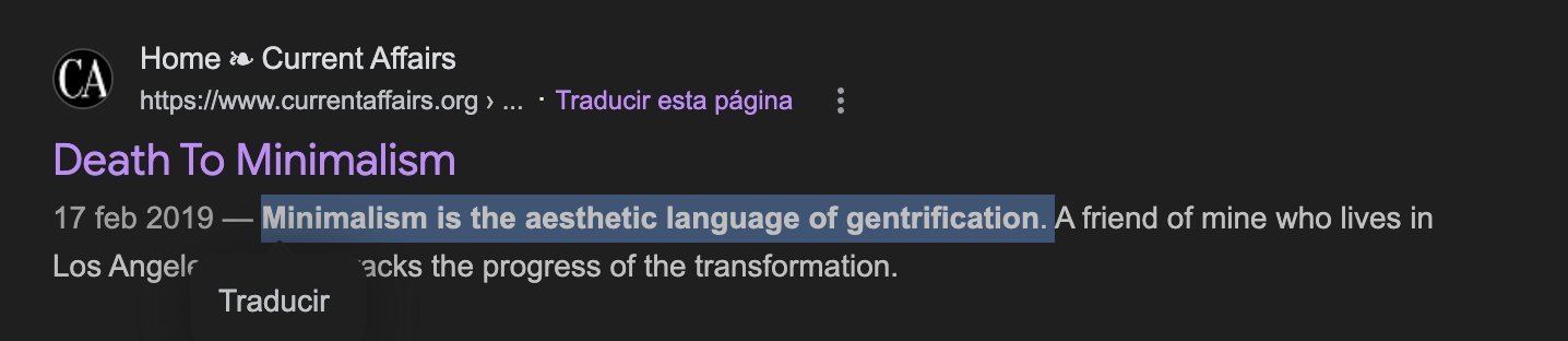First result on Google. "Minimalism is the aesthetic language of gentrification". Exactly, my good man. Anyway, try to remember Linkin Park, early Youtube, The Calling, Hoobastank, Half Life 2, Drowning Pool, Windows Media Player skins, 3D-effect websites -three.js would've meant the world back in those years, but I digress-, 009 Sound System... Here, i'll refresh your memory: Everything felt so full of substance. Like the thing they do at Five Guys with the fries, so that you leave satisfied, feel that you're getting bang for your buck, because they stuff the bag full. It felt full in the way that, I remember, were this kind of colourful smoke bombs that you could learn how to make on youtube. By the way first time I listened to "Black Hole Sun" by Soundgarden was in a tutorial video for one of those back in 2009. So you had the ping-pong ball cut in pieces and wrapped in aluminum foil, easy-cheap smoke bombs, the only ones I could really make as a 6 year old kid, but then you had these potassium nitrate and sugar bombs, which really were the good stuff. The depth of that smoke, and the colorings you added while cooking that mix... -Do you remember how we used to build stuff at home?- That's what I would compare things back then to, they were full, gave deep, thick smoke, a lot of it, and colored. And you also got to listen to Soundgarden while doing it.